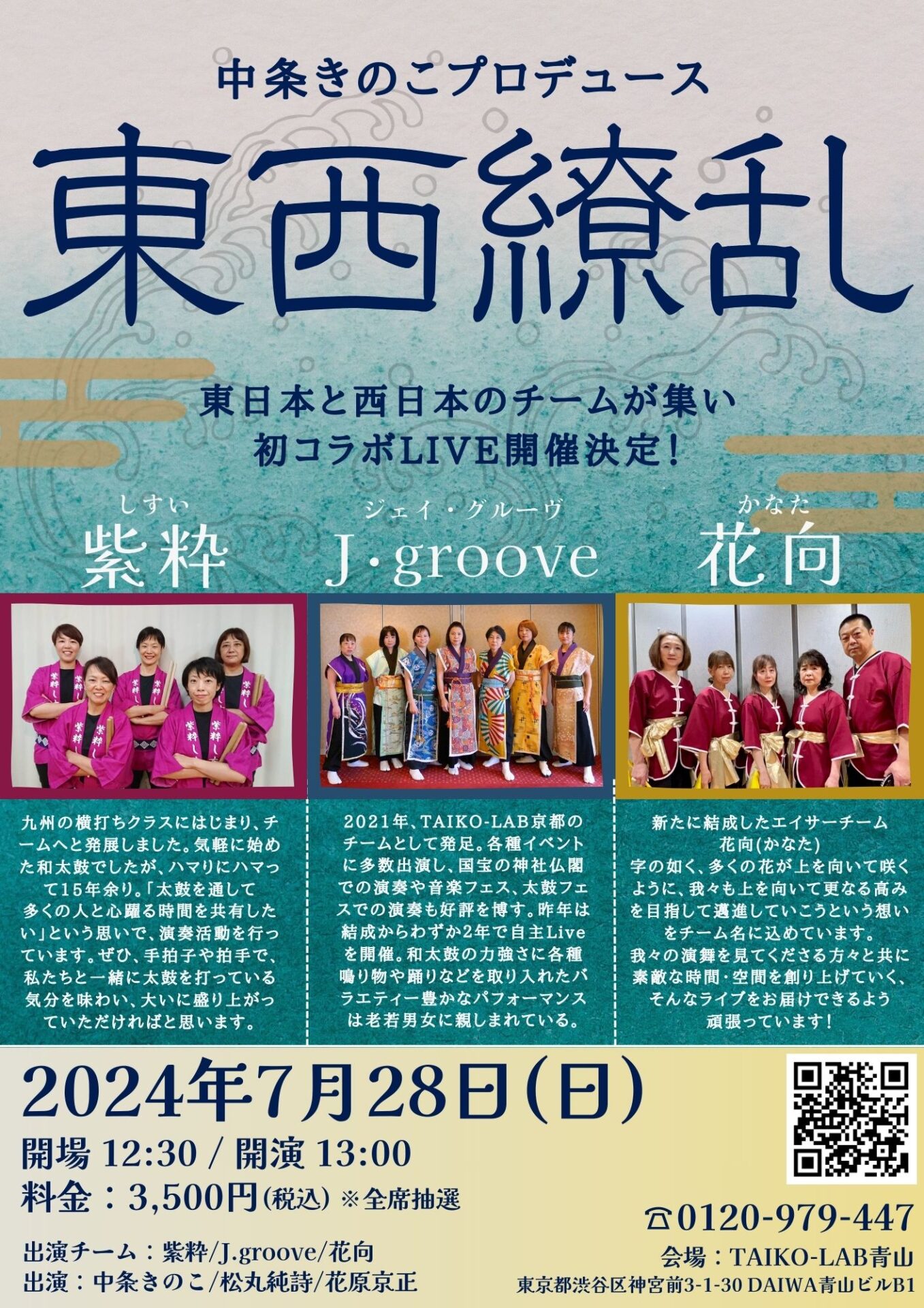 2021年TAIKO-LAB京都のチームとして発足。国宝の神社仏閣での演奏や音楽フェスでの演奏も好評を博す。昨年には自主Liveを開催。和太鼓の力強さに各種鳴り物や踊りなどを取り入れたバラエティー豊かなパフォーマンスは老若男女に親しまれている。